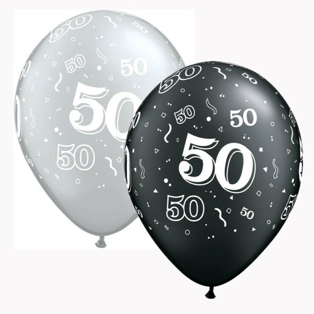 PALLONCINI LATTICE 11" STAMPATI QUALATEX NERO E ARGENTO N°50 25 PZ