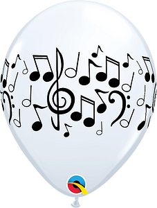 PALLONCINI LATTICE 11" STAMPATI QUALATEX NOTE MUSICALI 25 PZ