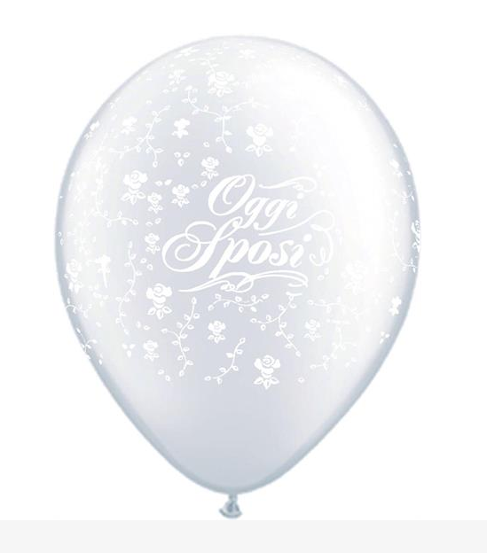 PALLONCINI LATTICE 11" STAMPATI QUALATEX OGGI SPOSI FIORI BIANCO SU BIANCO 100 PZ
