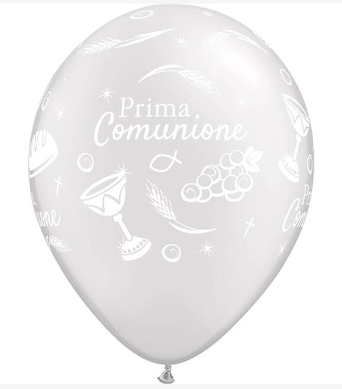 PALLONCINI LATTICE 11" STAMPATI QUALATEX PRIMA COMUNIONE BIANCO SYMBOLS 100 PZ