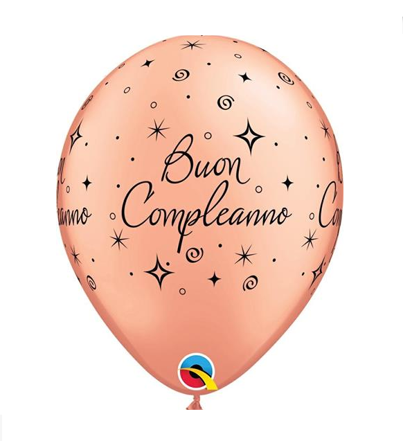 PALLONCINI LATTICE 11" STAMPATI QUALATEX BUON COMPLEANNO ROSE GOLD STELLE 50PZ