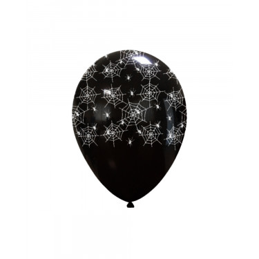 PALLONCINI LATTICE 12" HALLOWEEN ECO NERO CON RAGNATELE BIANCHE