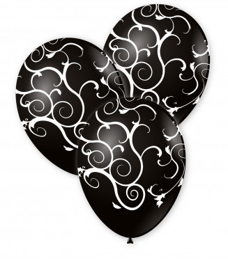 PALLONCINI LATTICE 12" STAMPATI ECO FILIGREE NERO BIANCO 100 PZ