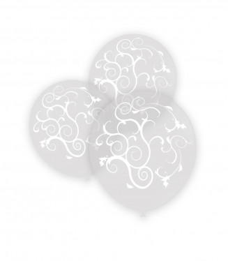PALLONCINI LATTICE 12" STAMPATI ECO FILIGREE TRAPARENTE ARGENTO 100 PZ
