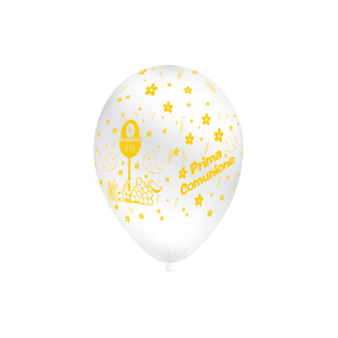 PALLONCINI LATTICE 12" STAMPATI ECO PRIMA COMUNIONE BIANCO CON SCRITTA OCRA 100 PZ