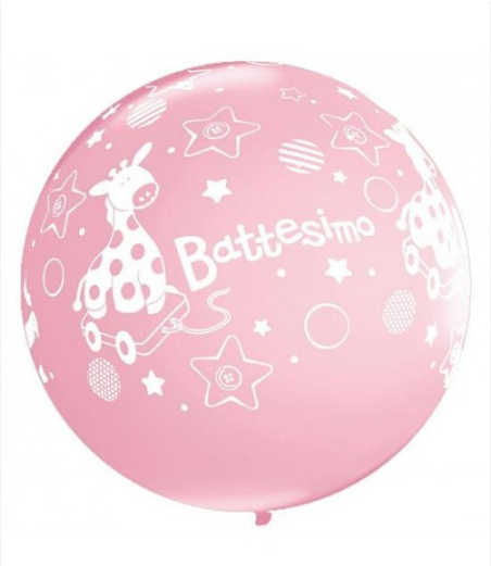 PALLONCINI LATTICE 3' STAMPATI QUALATEX BATTESIMO FIORI ROSA 2 PZ