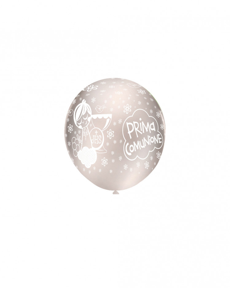 PALLONCINI LATTICE 5" STAMPATI PRIMA COMONIONE BIANCO PERLA 100PZ