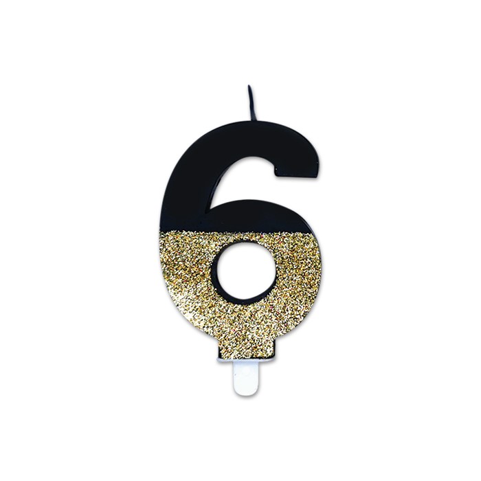 CANDELINA 7 CM NERO ORO GLITTER N 6